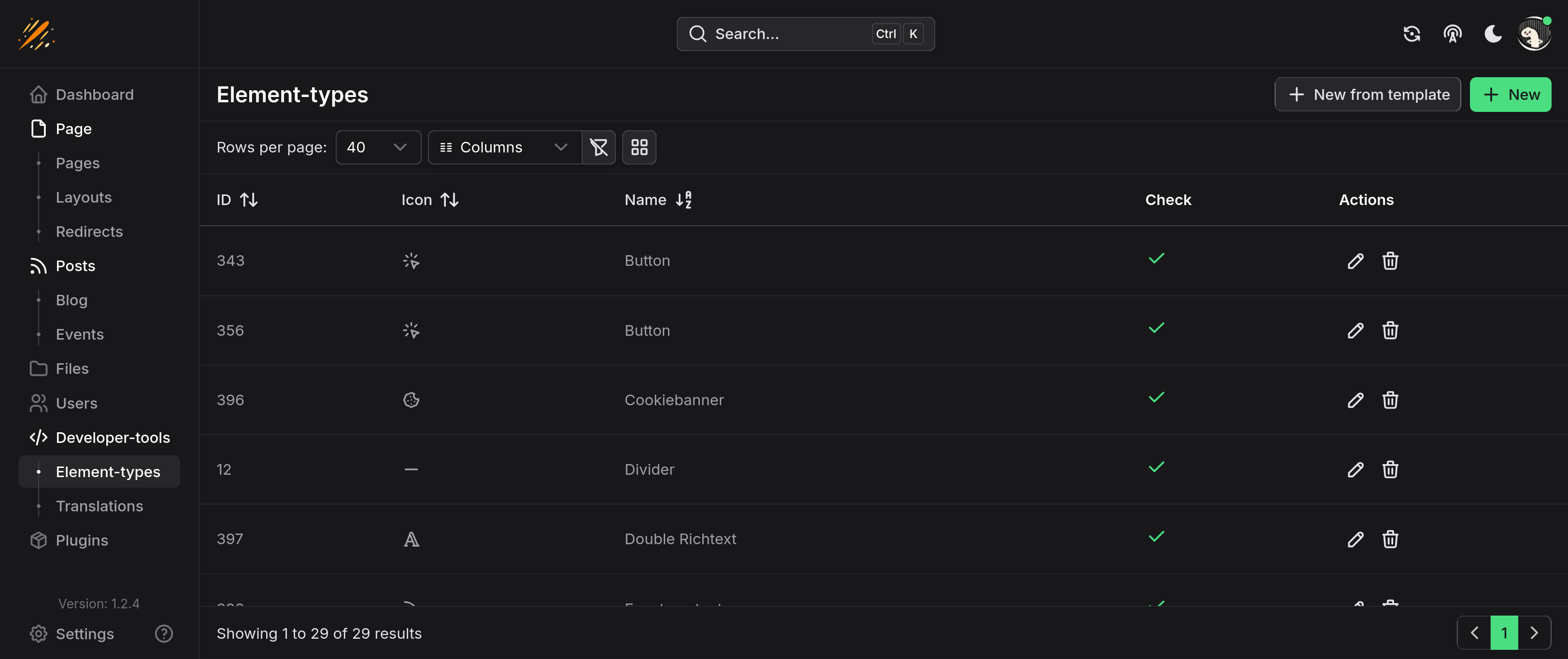 To create a new component, click the + New button located in the top right