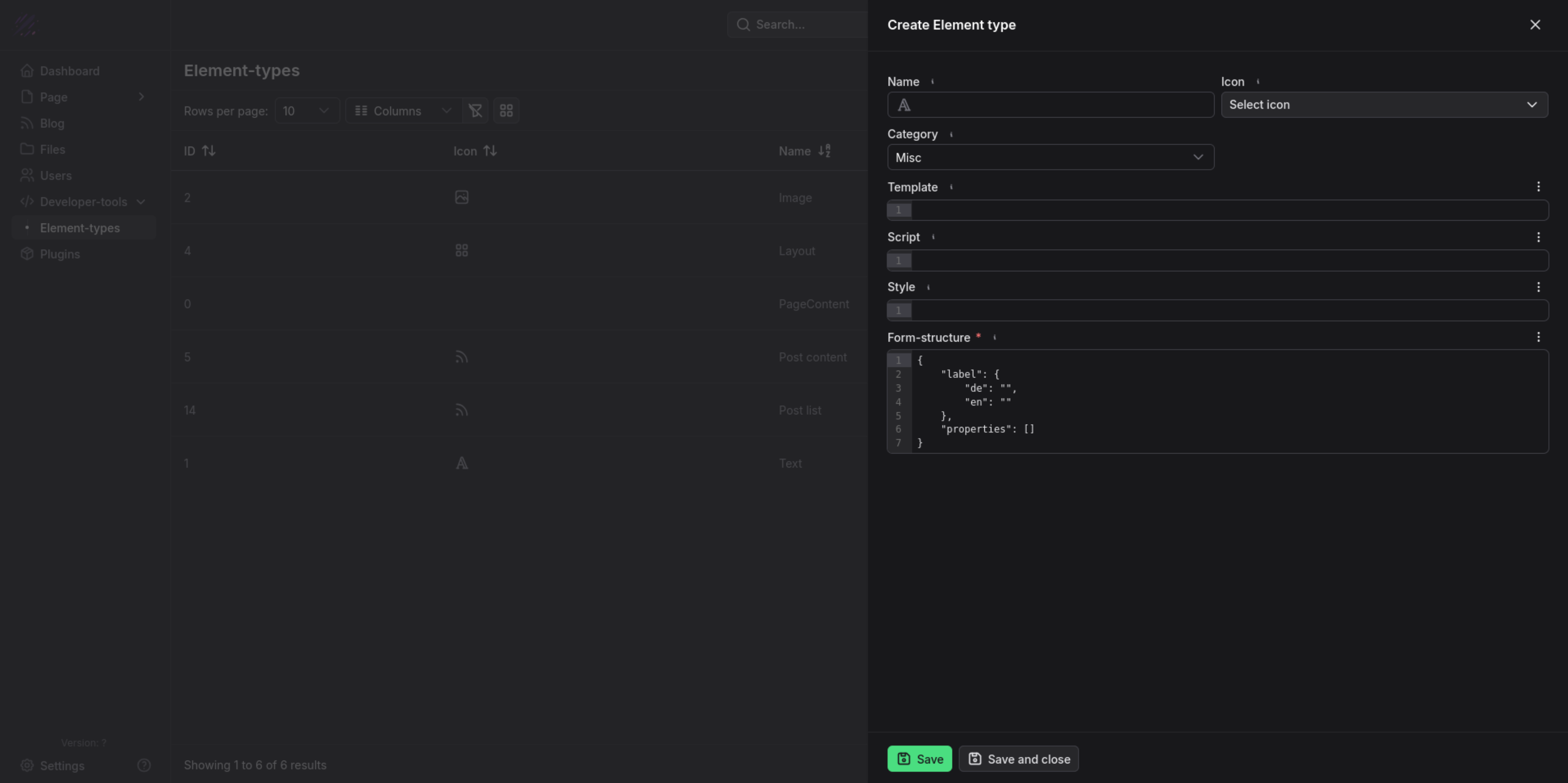 Here you define the form for editing data for each element. Each form input