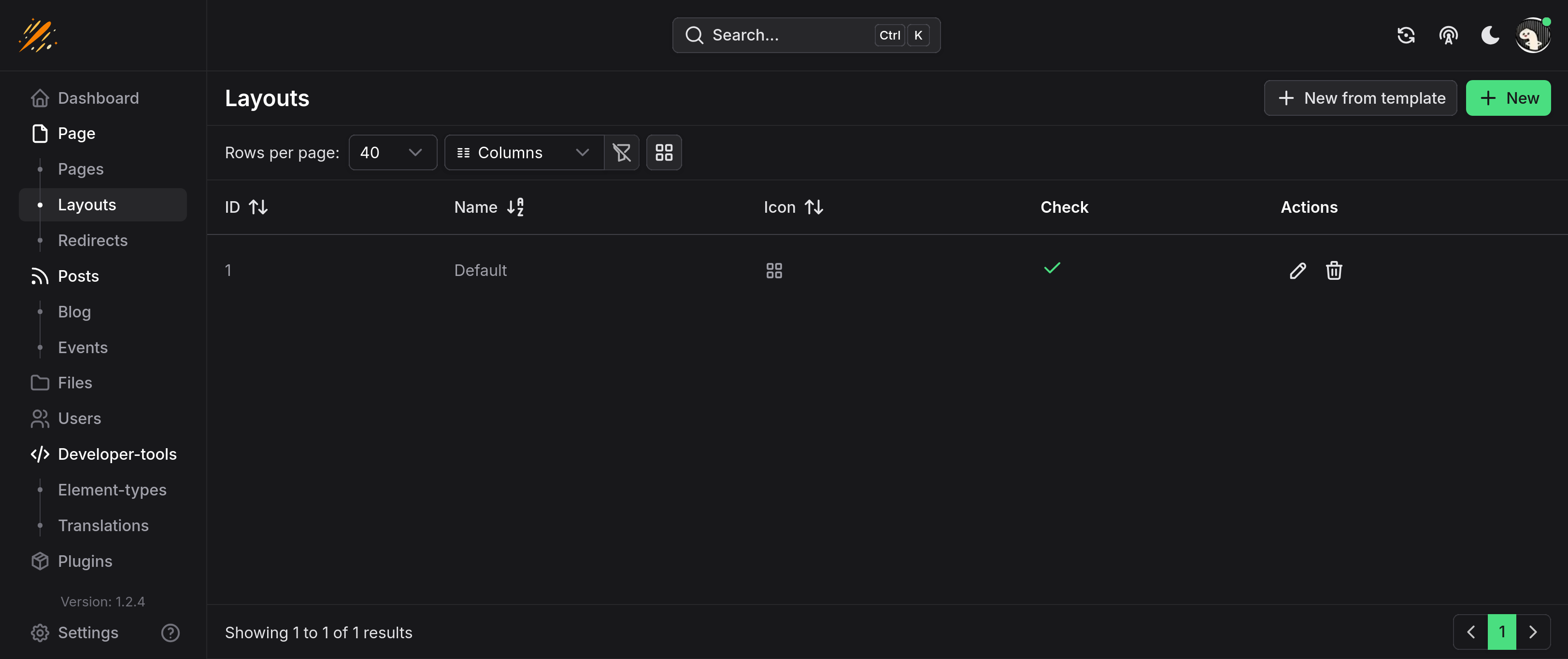 You can create new layouts by navigating to Layouts under Page in the sidebar.